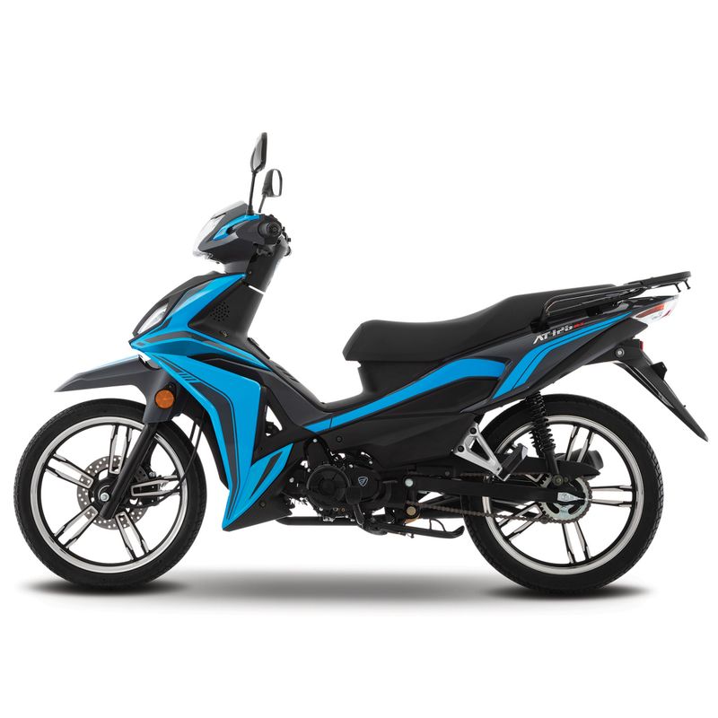 La motocicleta de trabajo AT125RT tiene un motor de 4 tiempos monocilíndrico con una potencia máxima de 8.7 Hp @ 7700 RPM, una cilindrada de 124 CC y un torque máximo de 9 N-m @ 7000 RPM.