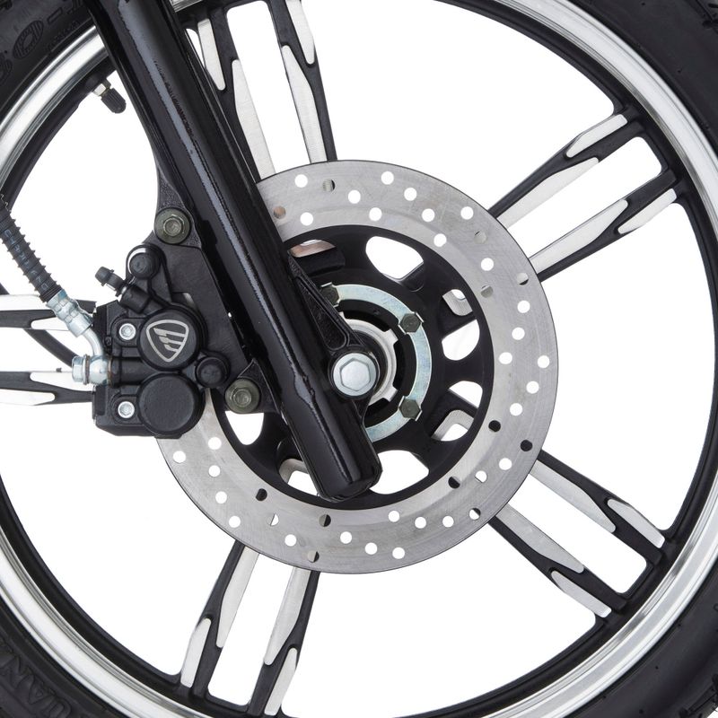 Su sistema de arranque es eléctrico y de pedal muy fácil de utilizar, tiene transmisión semi-automática, frenos delanteros de disco y traseros de tambor. Su suspensión delantera es de horquilla telescópica y la trasera es basculante doble amortiguador, mismas que te brindan mayor adherencia, control y confort al manejar.
