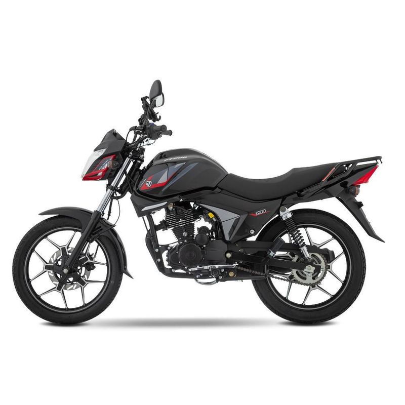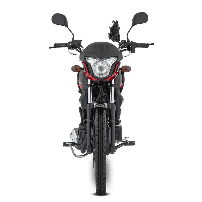 Su sistema de arranque es eléctrico y de pedal para ser más fácil de usar, su sistema de enfriamiento es de aire forzado, tiene transmisión estándar de 5 velocidades/por cadena, frenos delanteros de disco sencillo y frenos traseros de tambor, su suspensión delantera es de horquilla telescópica y la trasera es basculante doble amortiguador, mismas que te brindan mayor adherencia, control y confort al manejar.