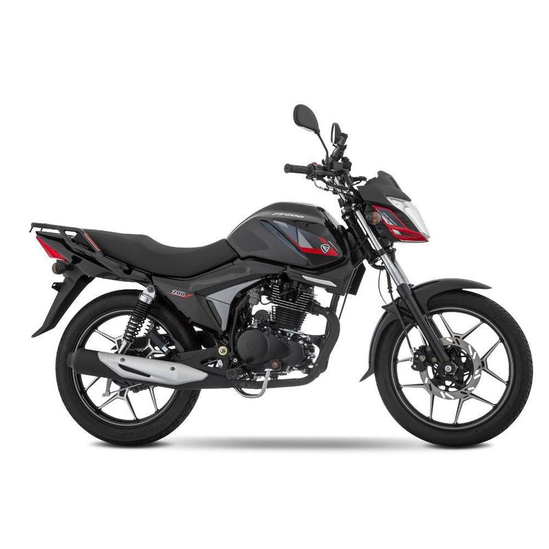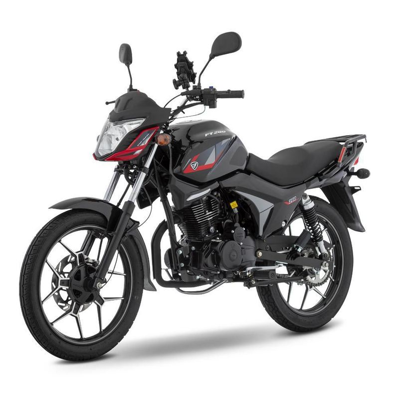 La moto FT200 tiene un motor de 4 tiempos monocilíndrico con una potencia máxima de 14.1 Hp @ 7500 RPM, una cilindrada de 205 CC y un torque máximo de 14.2 N-m @ 6500 RPM.