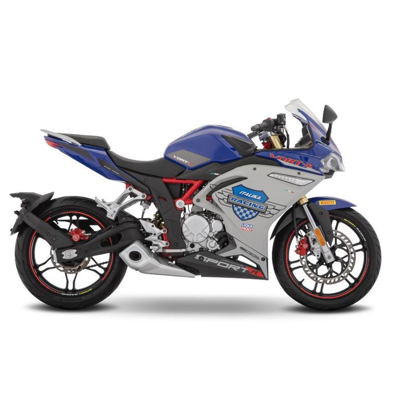 La motocicleta deportiva Vort X 300R tiene un motor de 4 tiempos con una potencia máxima de 26.9 Hp@8500 RPM, una cilindrada de 292 CC y un torque máximo de 24.4 N-m@7000 RPM.