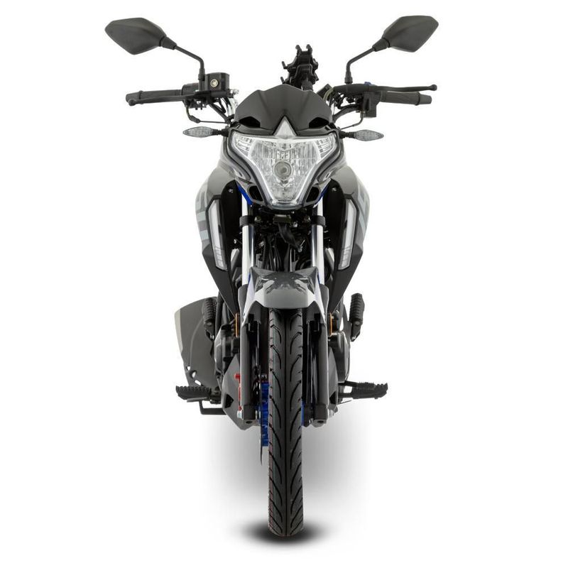 Su sistema de arranque es eléctrico y de pedal, lo que resulta muy fácil de utilizar, tiene transmisión estándar de 5 velocidades/por cadena, frenos delanteros de disco sencillo y traseros de tambor. Su suspensión delantera es de horquilla telescópica y la trasera es basculante de mono shock, mismas que te brindan mayor adherencia, control y confort al manejar.