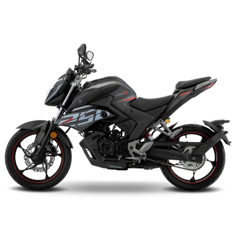 La motocicleta urbana 250Z tiene un motor de 4 tiempos, monocilíndrico con una potencia máxima de 17.9 Hp @ 7000 RPM, una cilindrada de 250 CC y un torque máximo de 17.7 N-m @ 6000 RPM.