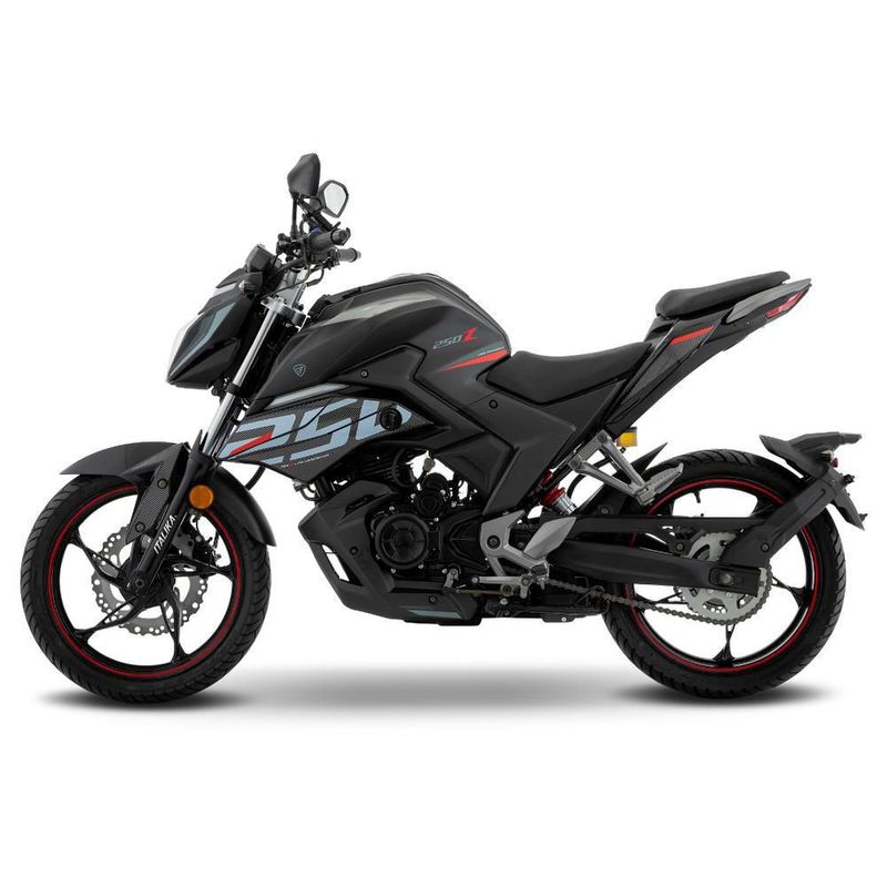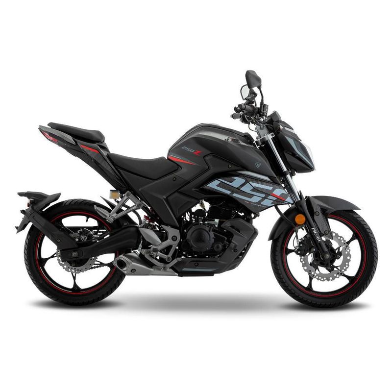 La moto 250Z tiene un motor de 4 tiempos monocilíndrico con una potencia máxima de 17.9 Hp @ 7000 RPM, una cilindrada de 250 CC y un torque máximo de 17.7 N-m @ 6000 RPM.
